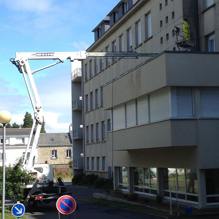 - Lavage de vitres toute hauteur réalisé avec nacelle.Remise en état vitres et châssis après rénovationLavage de volets roulants